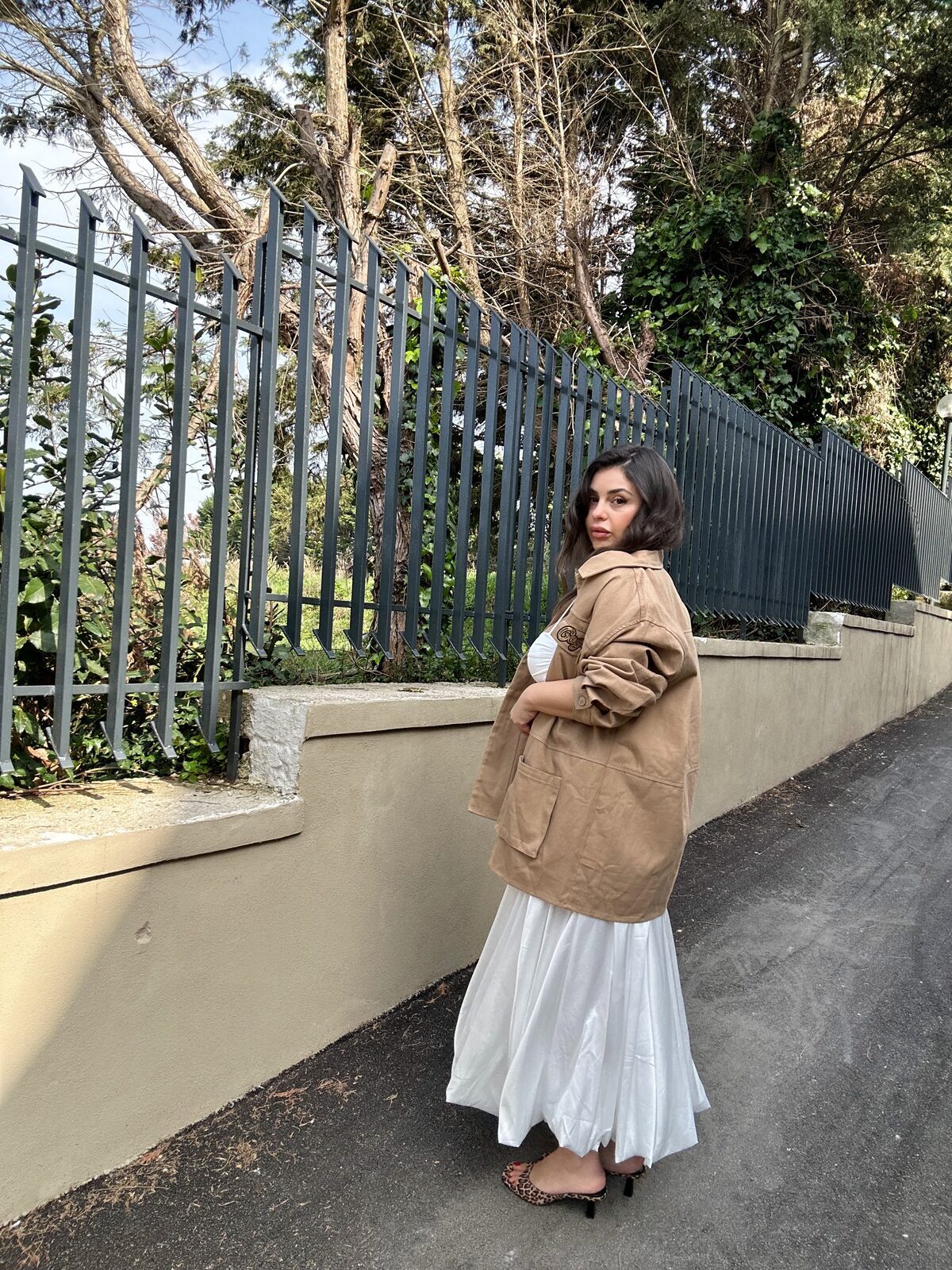 Capospalla statement della collezione, cura del dettaglio e taglio sartoriale.